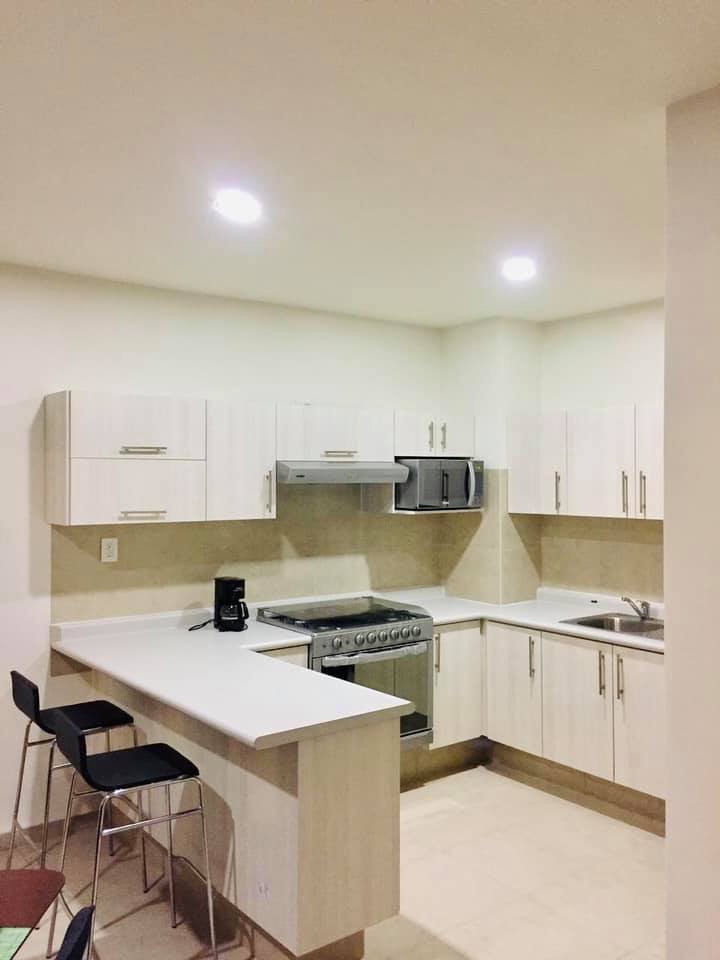 En la plata baja recibidor, sala comedor, cocina integral con barra, área de lavado y amplio jardín con asador.